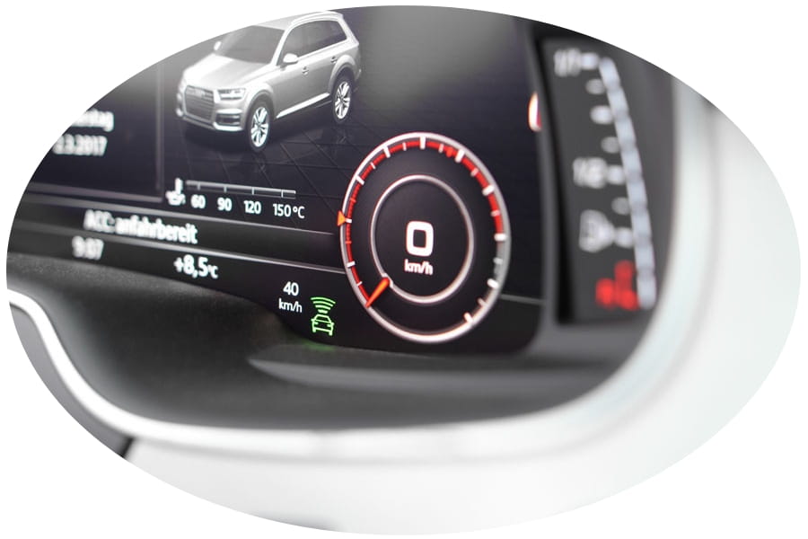 - Wykorzystując czujnik radarowy w przednim zderzaku, system reguluje zarówno prędkość, jak i odległość od poprzedzającego pojazdu