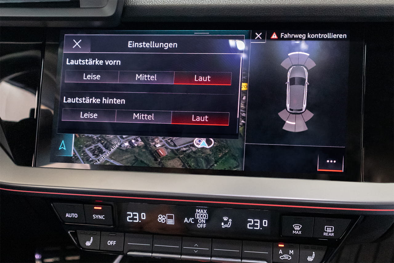 - Czujniki pozwalają na lepsze oszacowanie odległości do przeszkody poprzez optyczną wizualizację zmian odległości