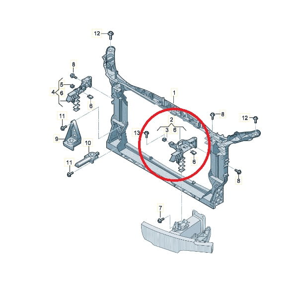 - uchwyt lampy przedniej z lewej strony