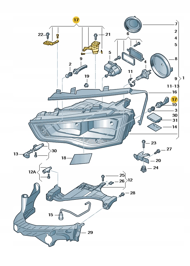 Zestaw naprawczy obudowy reflektora 8T0998121B Oryginalny OE