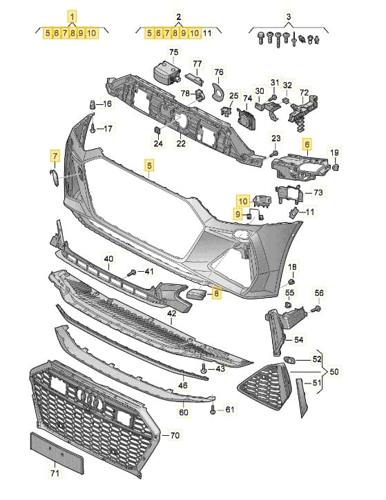 - nowa kratka zderzaka przedniego